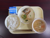 今日の給食の献立は、「みそタンメン、牛乳、肉シューマイ、モヤシとほうれん草のナムル」です。632キロカロリーです。
