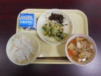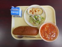 今日の給食の献立は、「辛みそタンメン、牛乳、ミニ肉まん、すき昆布の香味和え」です。631キロカロリーです。