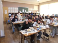 今日の給食は、キャベツもち、沢煮うどん、はるか、牛乳、郡山市の郷土料理献立でした...