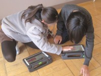 3年生 理科。かげの動き方と太陽の位置の変わり方についてグループで確認しました。