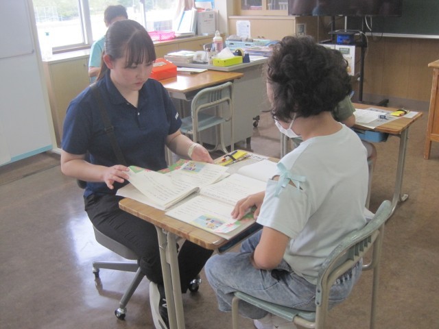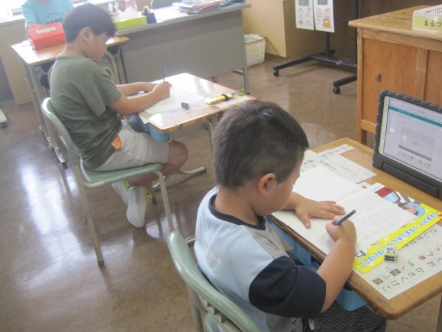 1、2年生は平仮名やカタ仮名などの練習。4年生は文章を読み取る学習に取り組んでいました。