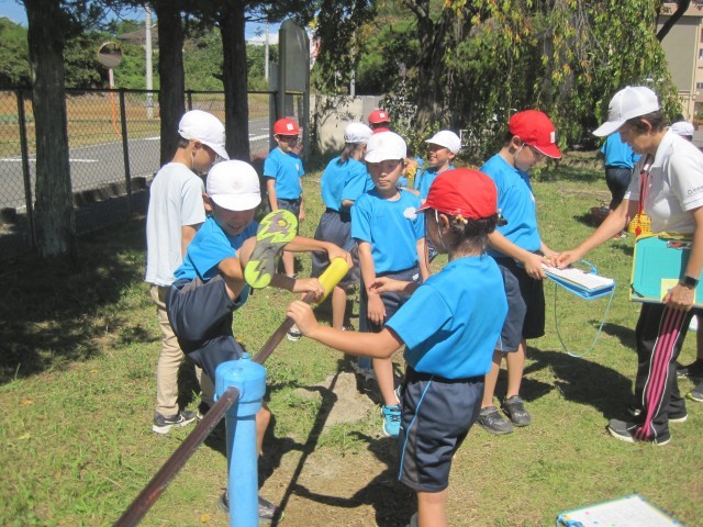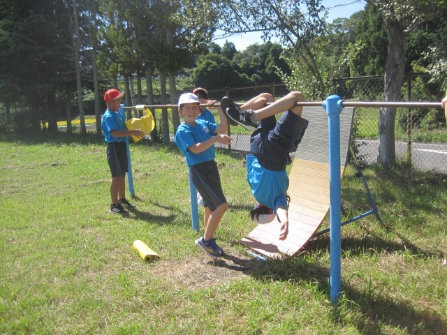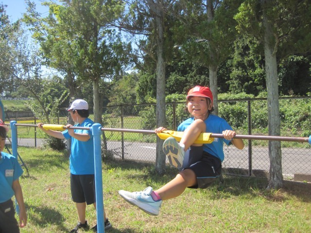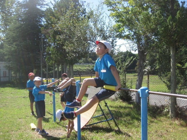 鉄棒へのあがり方、鉄棒からの降り方、回転技など、お互いに教え合いながら練習を重ねました。