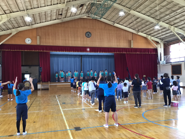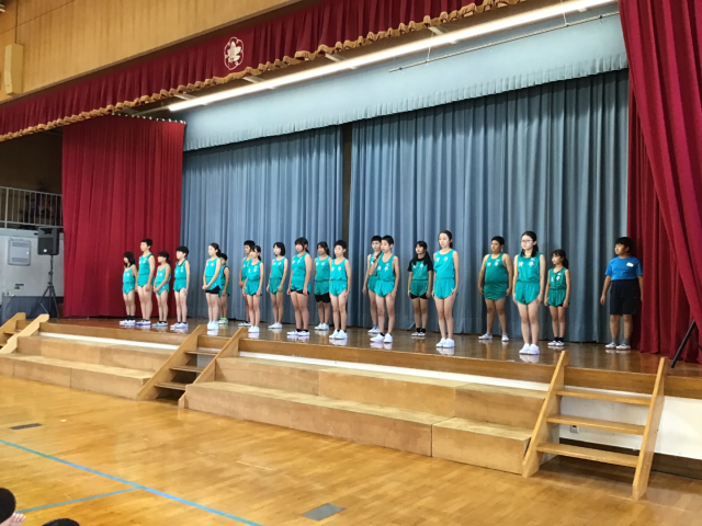 選手一人一人が出場する種目、目標を発表しました。その後の応援では、5年生が応援団となり、全校生で大きな声で選手を励ましました。