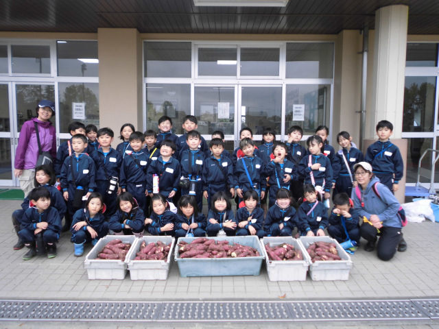 昨日雨が降ったため実施が心配されたサツマイモの収穫を無事行うことができました。