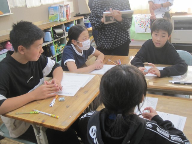自分の立場を明確にしてペアやグループで話し合い、考えを深めました。