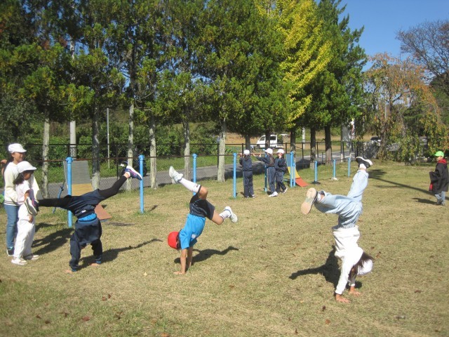 秋晴れの校庭で子どもたちは思い思いに遊んでいました。