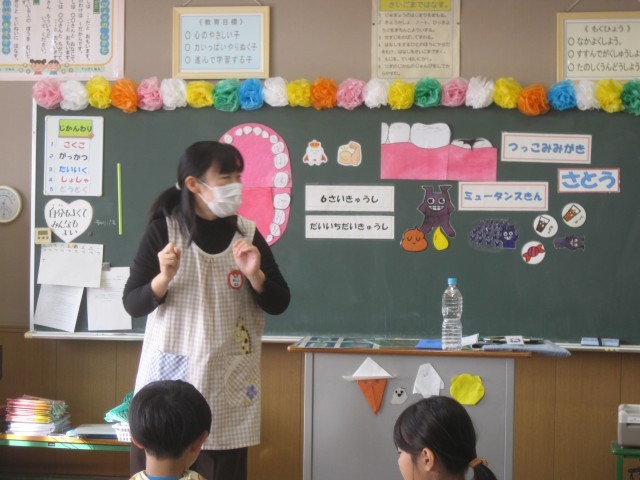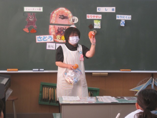 歯科衛生士の方をお招きし、「歯・口の健康づくり」について、学年ごとに指導していただきました。
