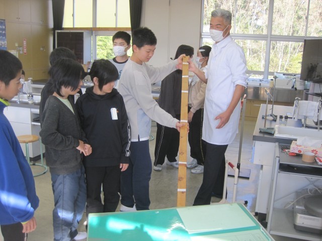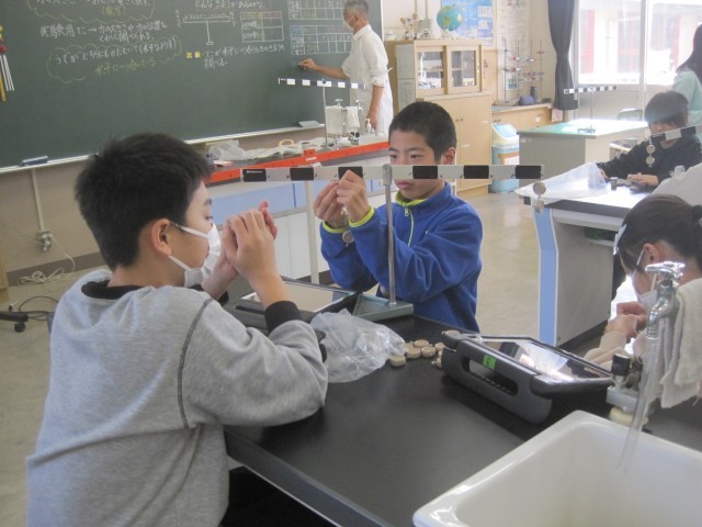 実験用てこを用いて、左右がつりあう理由を考えたり、てこを使って机を動かしたりしました。
