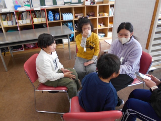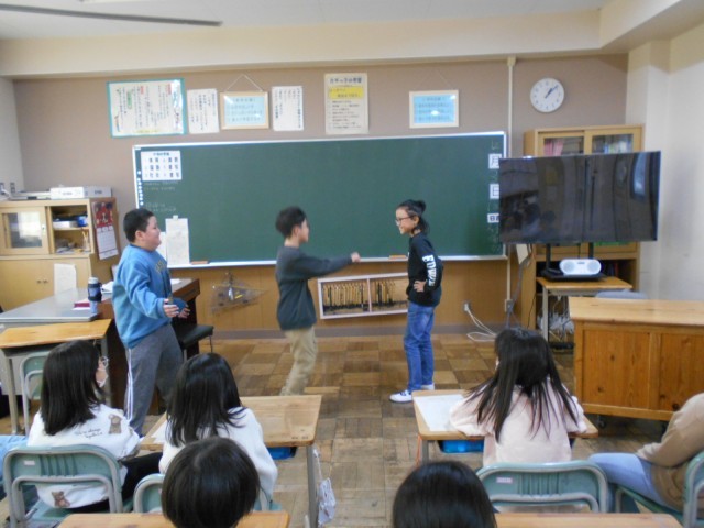 5年生はキャラクター当てクイズ、4年生は劇の発表、たちばな学級は爆弾ゲームをして楽しく過ごしました。