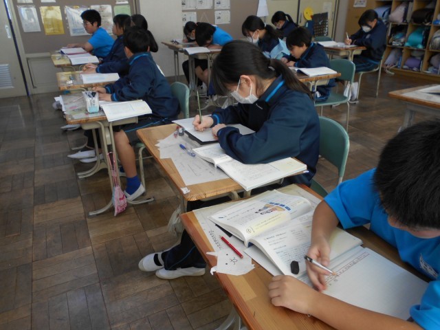 題材を決めて主張を考える→文章の構成を考える→意見文を書く→感想を伝え合う…など見通しをもって学習に取り組みます。