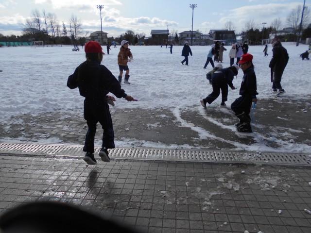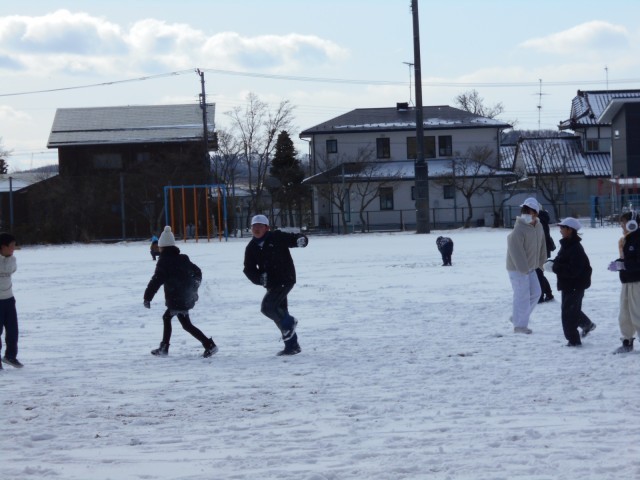 休み時間、雪と戯れる子どもたちの歓声が聞こえてきました。