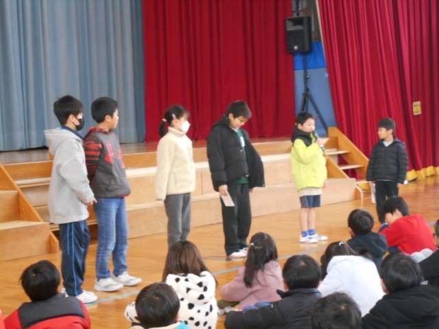 各学年の代表が「退治したい鬼」を発表した後、豆まき(的当てゲーム)をしました。