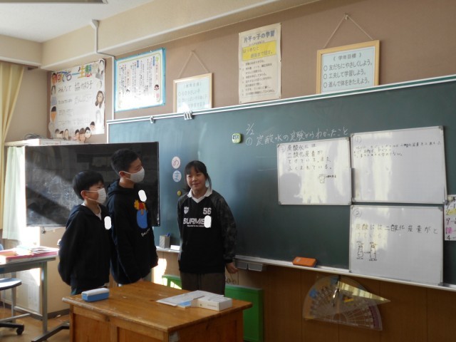 これまでの実験を通して学んだことをまとめます。グループで話し合い、わかったことを発表しました。