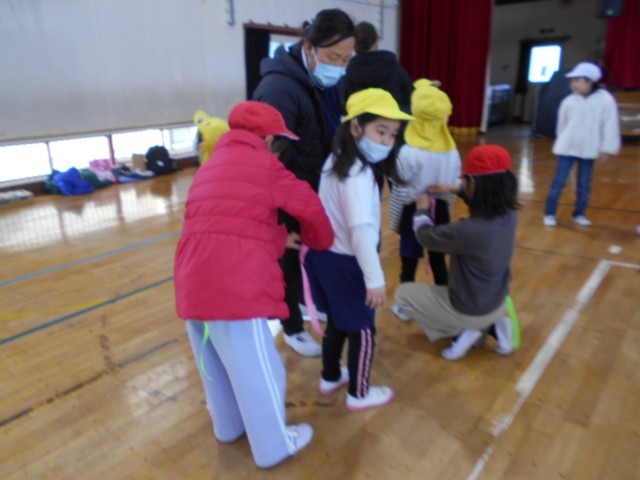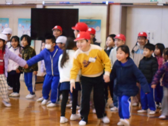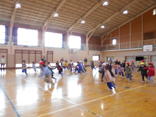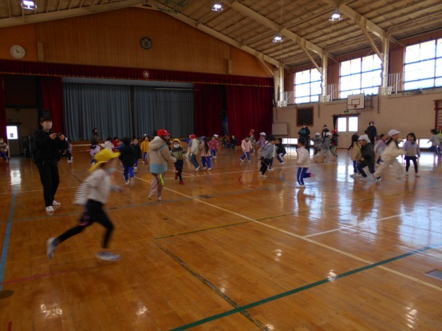 校内見学を終えて体育館に戻り、だるまさんが転んだ、