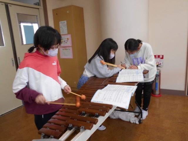 まずは、パート練習。その後、それぞれのパートの役割を生かして合奏できるようにします。