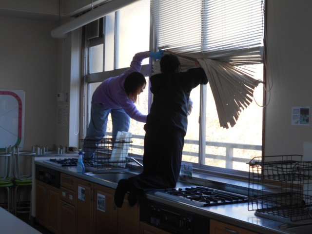 校舎のガラス、窓がきれいになり、とても明るくなりました。