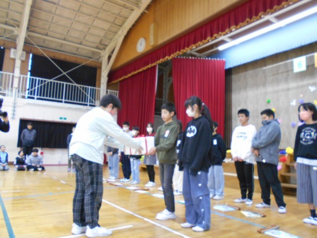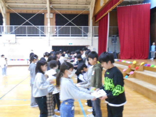 在校生から6年生に感謝のカードをプレゼントしました。