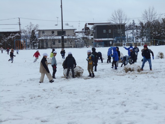 雪玉を作ったり、雪合戦をしたり……休み時間に雪遊びを楽しみました。
