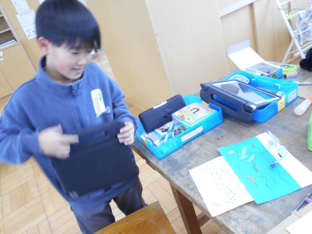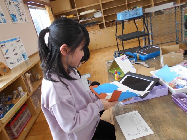 磁石の引き合う力、しりぞけ合う力を利用して動く仕組みを考え、自由に作品を作りました。