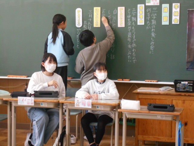 クラスの思い出作りにどんな集会をするか、みんなで話し合いました。