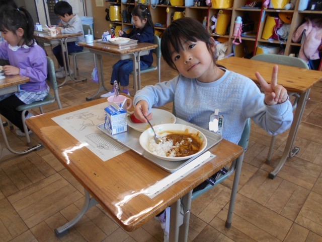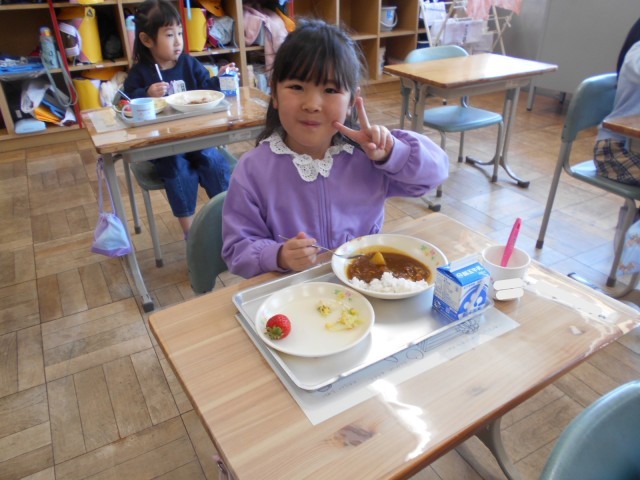 1年生は今日が初めての給食。好き嫌いなく、食べることができるといいですね。