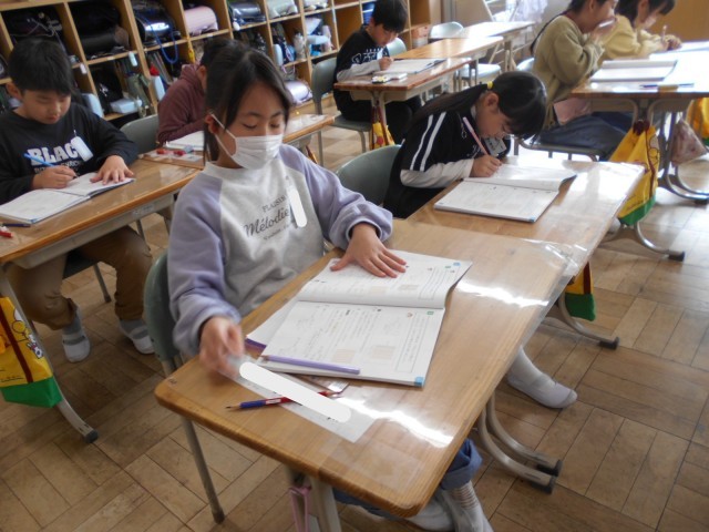 5×7と4×7の和は、9×7と同じになることなどについて確かめました。
