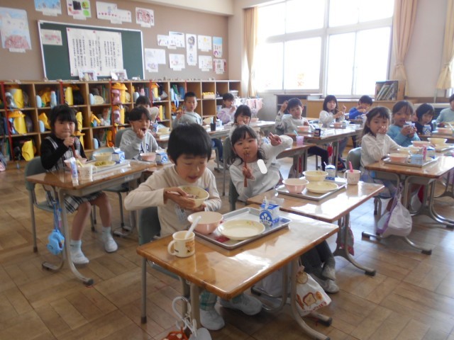 「入学お祝い献立」でした。1年生もおいしい給食いただきます!