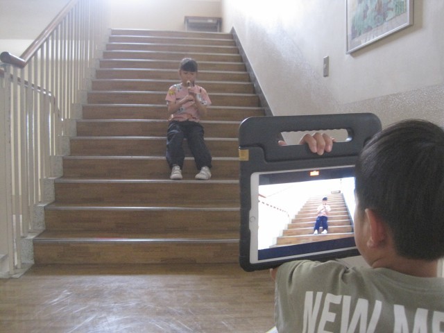 3年生 音楽。ペアになり、リコーダー演奏の動画撮影を始めました。学習発表会での披...