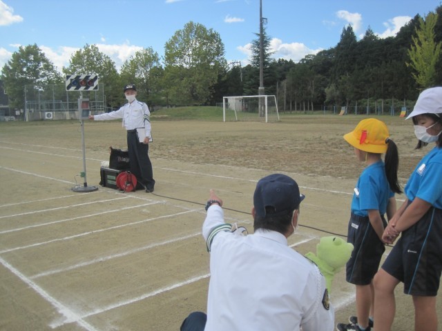 交通安全教室を実施しました(1・2年)。片平駐在所、交通教育専門員、交通安全協会...