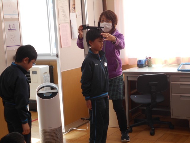 3学期の身体測定を実施しました。よく食べて、よく運動して、よく寝て、よく学んで、...
