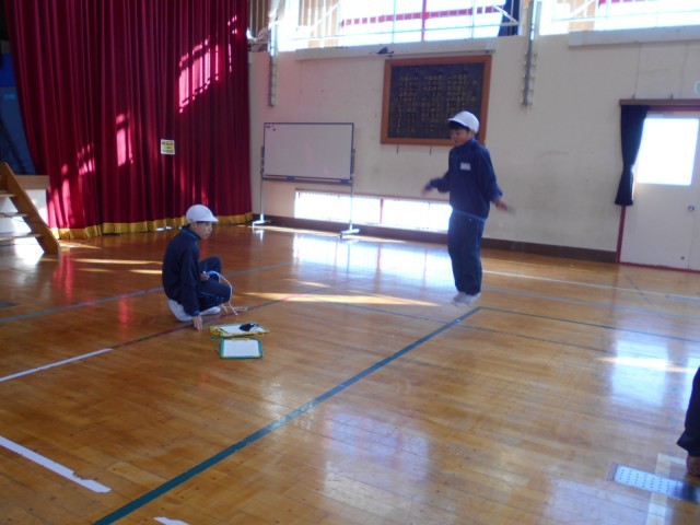 6年生 体育。今月23日に予定されている校内なわとび記録会に向けて練習しました。