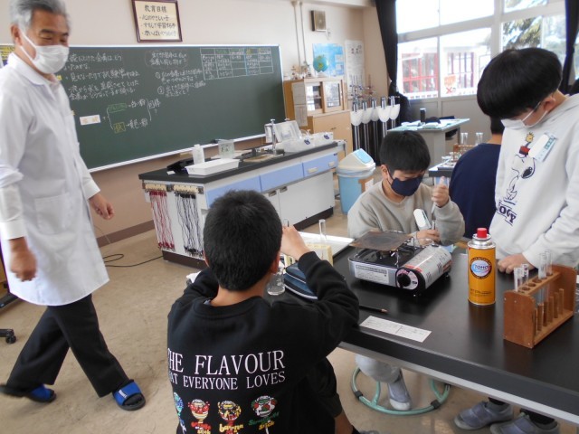 6年生 理科。鉄、アルミを溶かした塩酸を蒸発させて出てきた2つの粉。その白い粉と...