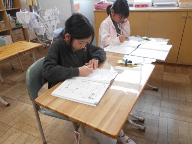 3年生国語(書写)。書の専門家を招き、用具の使い方、整理の仕方、保管の仕方など毛...