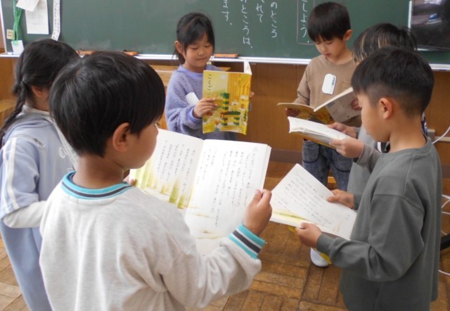2年生 国語。グループごとに音読の練習をします。どのように工夫して読めばよいかな...