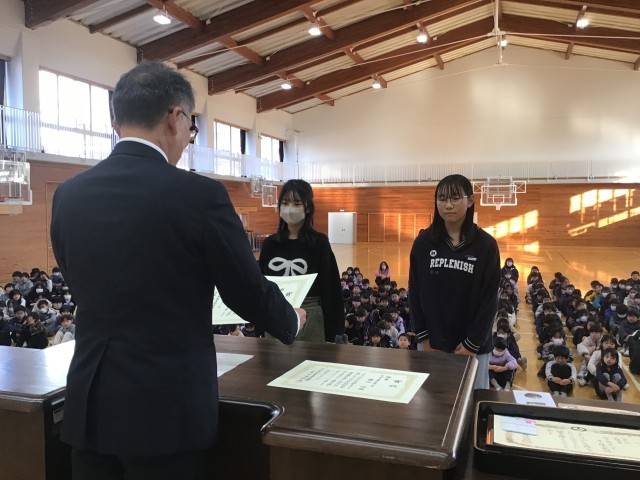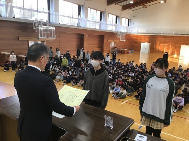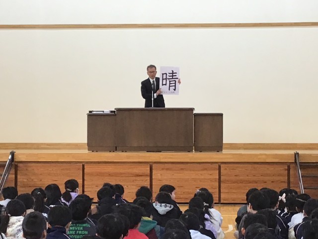 校長先生からは、一年を振り返り、今年の橘小を漢字一字で表すとしたら「晴」の漢字がふさわしいというお話がありました。