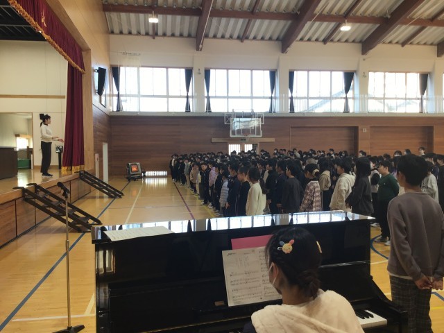 全校朝の歌では、「赤鼻のトナカイ」を元気よく歌いました。