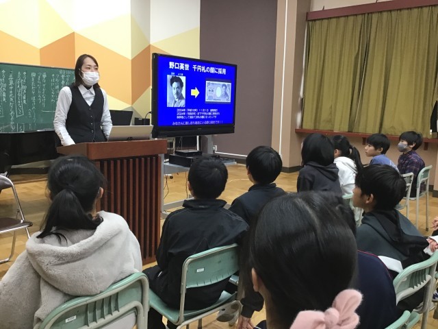 本日は「野口英世記念館」の方が来校し、野口英世についての出前授業がありました。