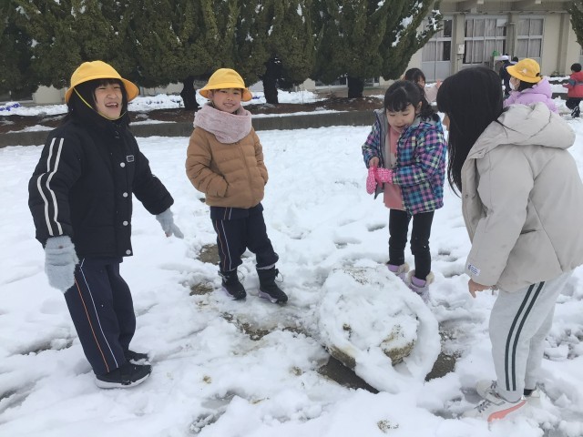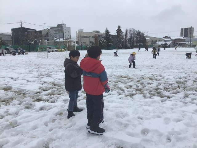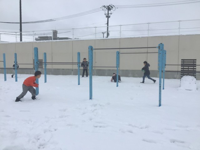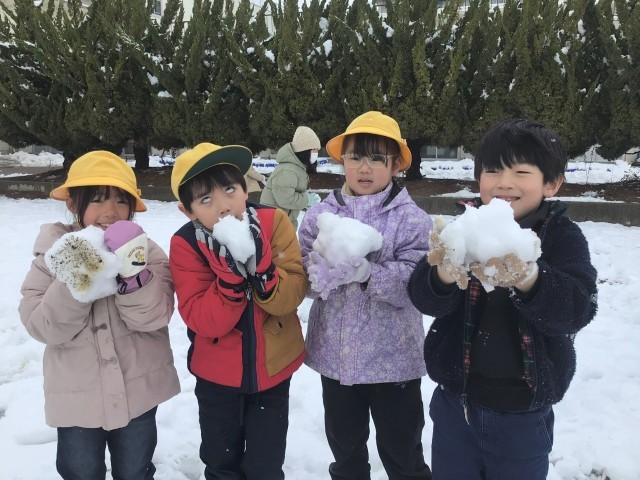4日(水)は、朝から雪がたくさん積もり、校庭は一面真っ白です。子どもたちはふかふかの雪に大喜び!休み時間は雪合戦をしたり、雪だるまを作ったり、かまくらを作ったりと、思い思いの雪遊びを楽しんでいました。