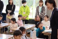 本日、エムポリアム幼稚園と婦人会保育所の年長児さん70人が、入学前の小学校体験にやって来ました。わくわく!楽しみに待っていた1年生は、入学してできるようになった、得意の縄とびや音楽の合奏を自信たっぷりに発表しました。