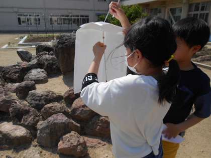 4年生は、理科の学習で気温を測っていました。