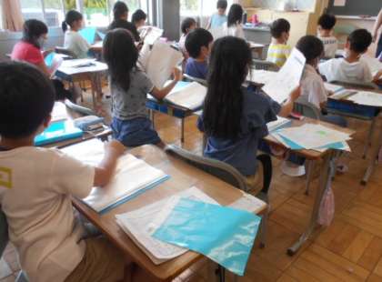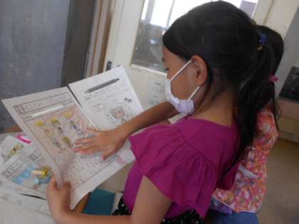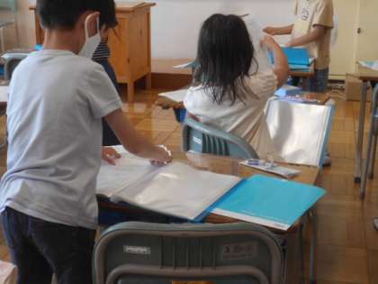 4月の頃の記録を懐かしく振り返る子どもたち。