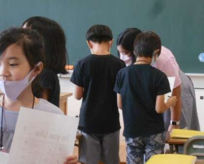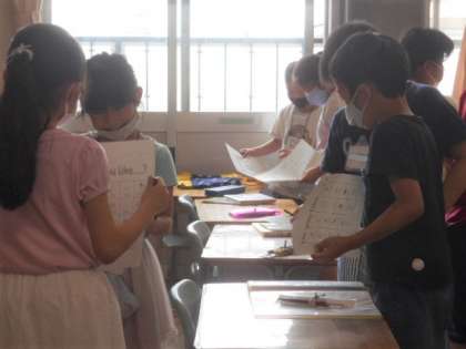 ビンゴをめざし、次々相手を見つけて話す積極的な子どもたちでした。