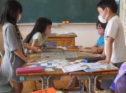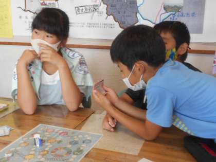 社会の学習のトピックでSDGsすごろくに挑戦するのは4年生。