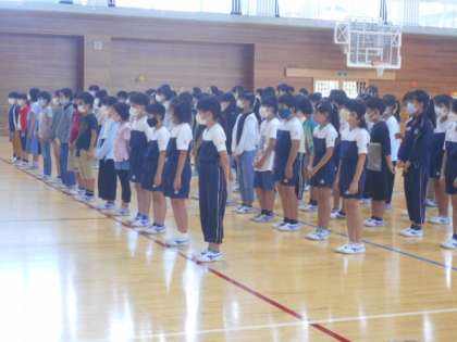 感染対策のため、下学年はZOOMでの参加でしたが、全校生の思いを6年生に伝えました。