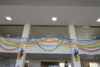 今月の150周年記念式典に向けて、少しずつ準備が始まっています。1日には、体育館の天井にぶら下げるメッセージ作りをしました。メッセージは当日のお楽しみに…!