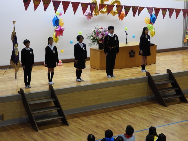 校旗入場、開式のことばに続き、実行委員長(現同窓会長)・PTA会長・学校長のあいさつがありました。そのあとは、 過去10年間で開成小学校を支えてくださった歴代の同窓会長様、PTA会長様、校長先生の表彰です。(お忙しい中、ご来校いただきましてありがとうございました。大変お世話になりました。)子どもたちは、しっかりとした態度で臨み、お世話になった方々に大きな拍手をおくっていました。