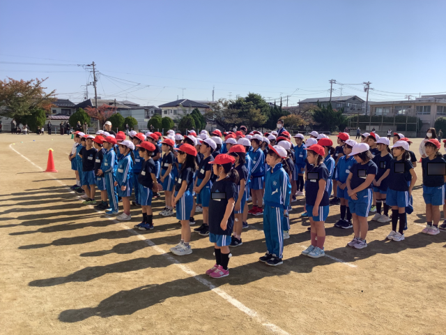 本日(10/30)、快晴の下、3年生の持久走記録会が行われました。多くの保護者の方の応援もあり、自己ベストを更新する子ども達がたくさん出ました。走り終わった後の子ども達の充実した顔が印象的でした。閉会式の成績発表では、スクールレコードとタイ記録の児童が出たことを発表すると、子供たちからも保護者の方からも大きな拍手が起こり、とても温かい雰囲気で記録会を終了できました。お忙しいところ応援に来てくださった保護者の方々ありがとうございました。