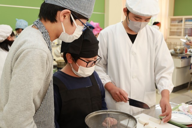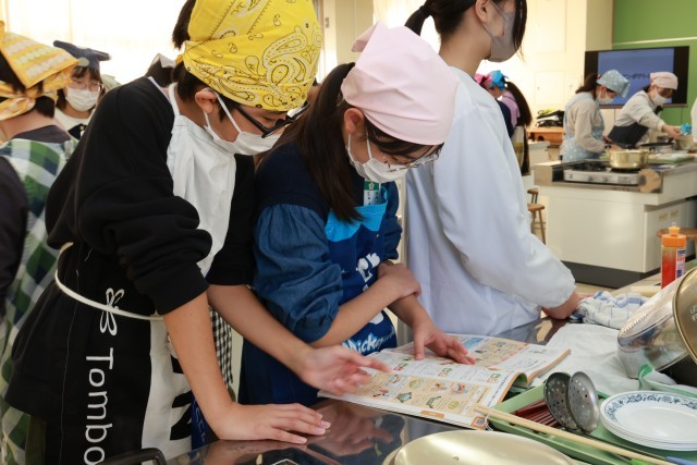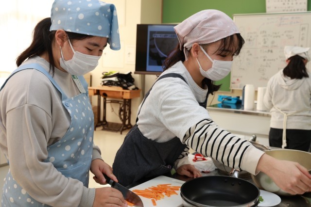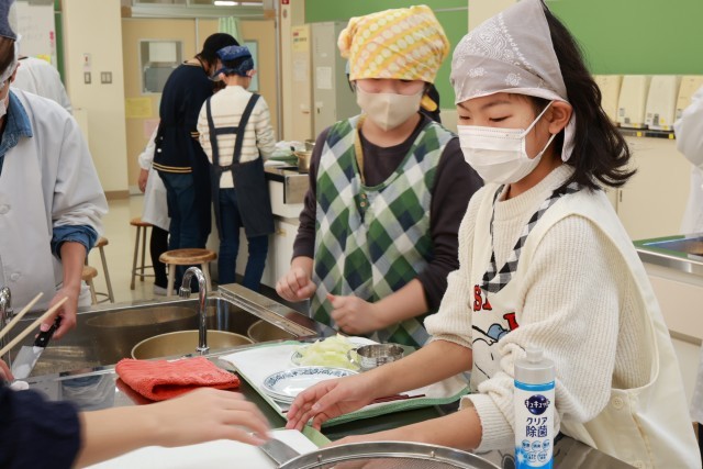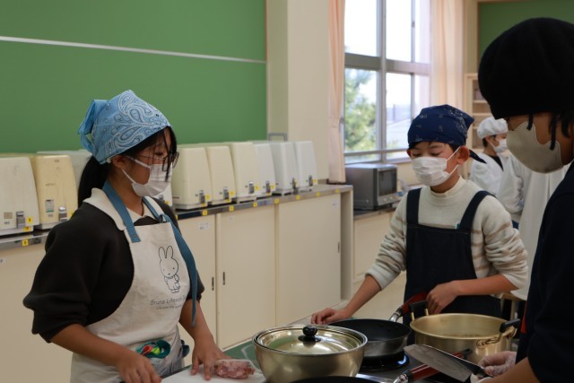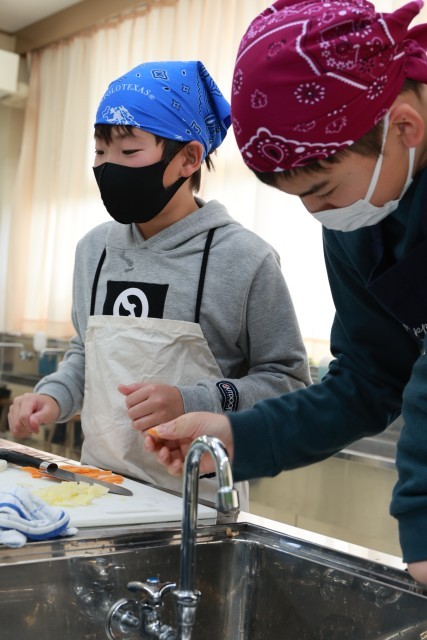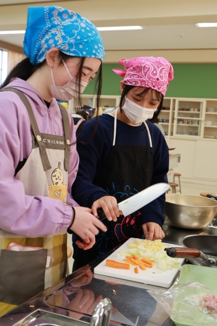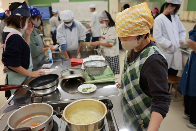 家庭科の学習は5年生から始まっており、調理実習ももう幾度も行っていますので、包丁やガスレンジの使い方は慣れたものです。班のみんなで協力して、調理しながら洗い物まで済ませることもできていました。料理のできばえもばっちりでした。
