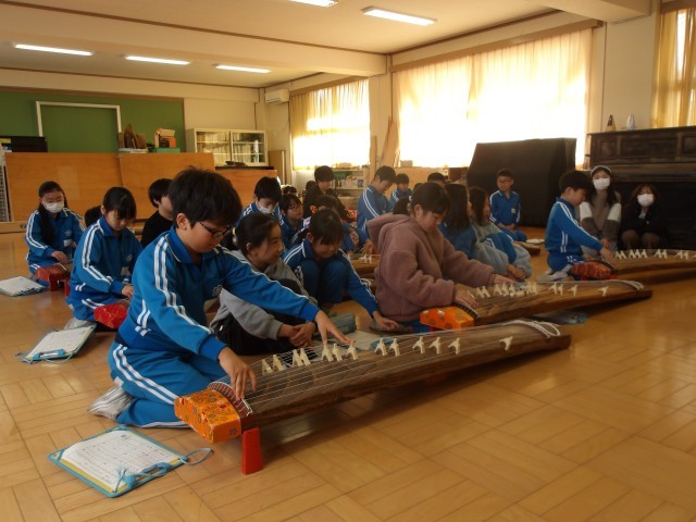 音楽「日本の音楽でつながろう」で、箏の先生をお迎えし、各クラス90分の授業を行いました。箏の特徴、歴史、そして演奏と、あっという間の時間でした。3人に1面の箏が準備され、子どもたちは、人生初の箏演奏に挑戦しました。さらに、先生の話は、箏だけではなく、私達の生活に大切な話をたくさんしてくださいました。