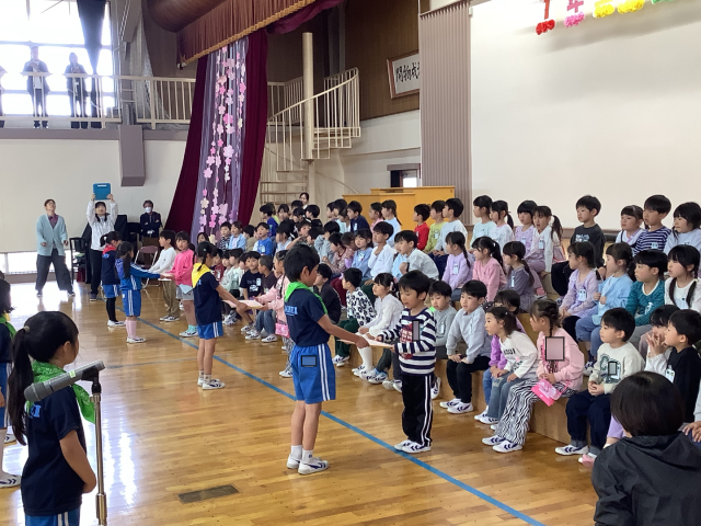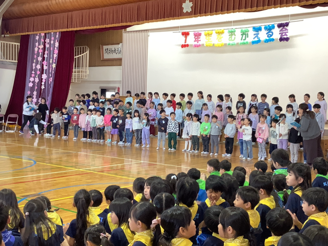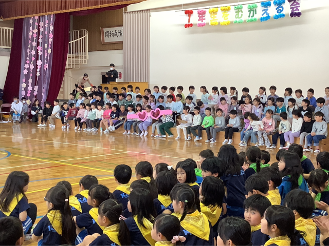 6年生が中心になって1年生の入学をお祝いした迎える会でした。